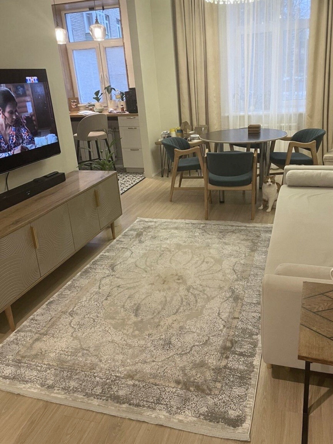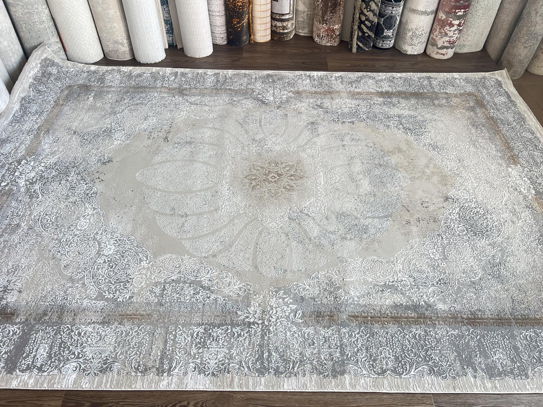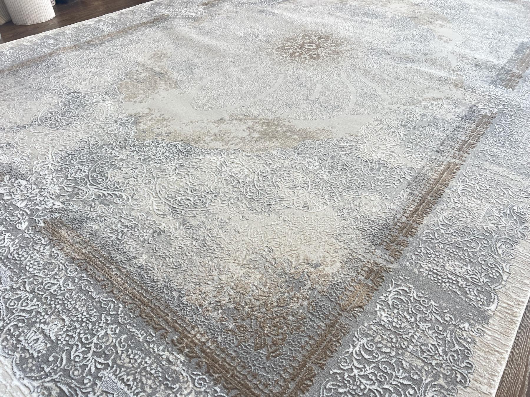 Цвета в ковре: серый, серебристый, светлый коричнево-бежевый