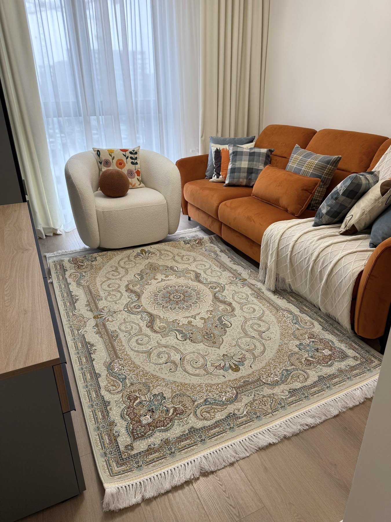 Очень плотный и приятный на ощупь ковёр. Шикарное качество!
