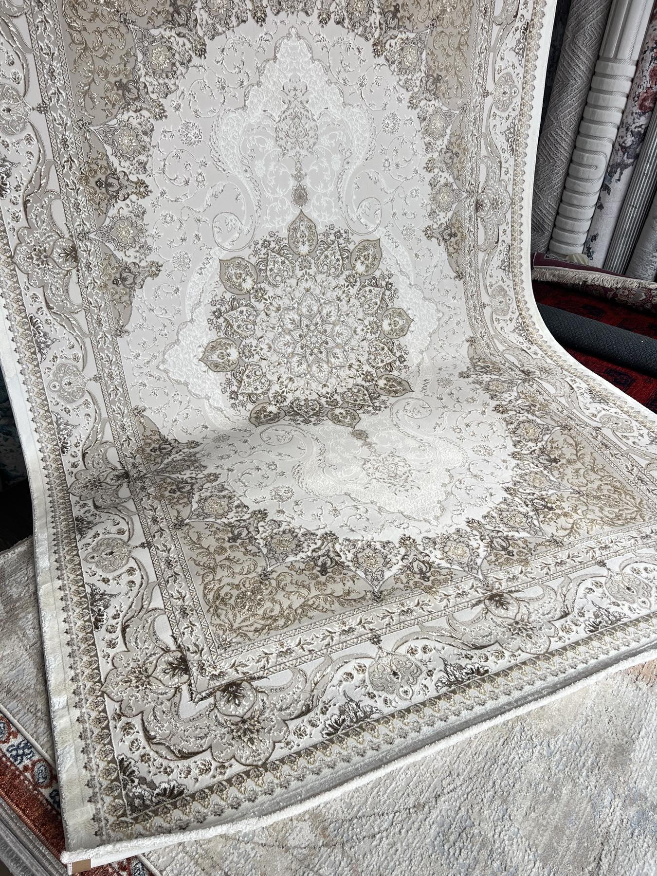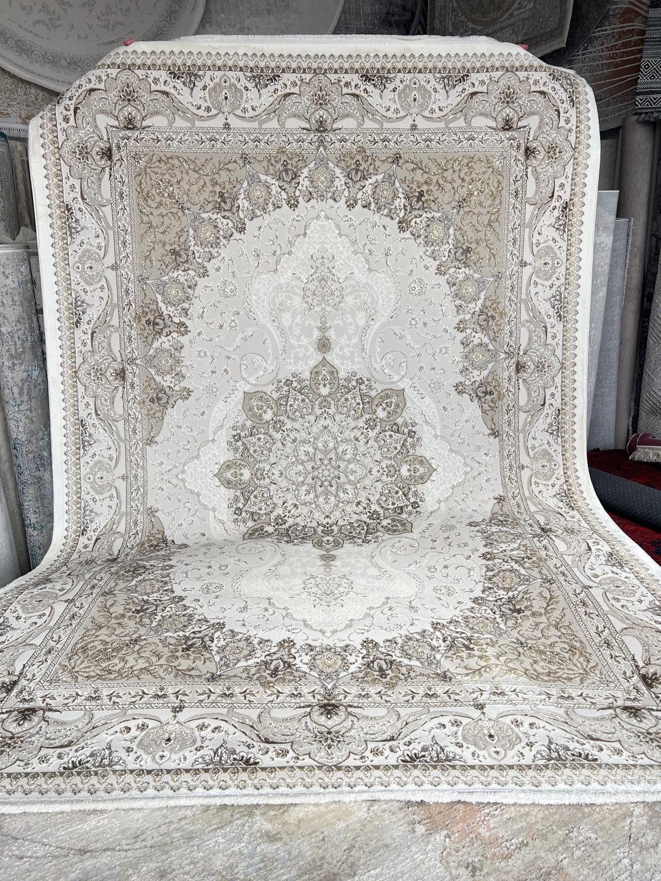 Цвета в ковре: светлый бежевый, коричневый и золотистый