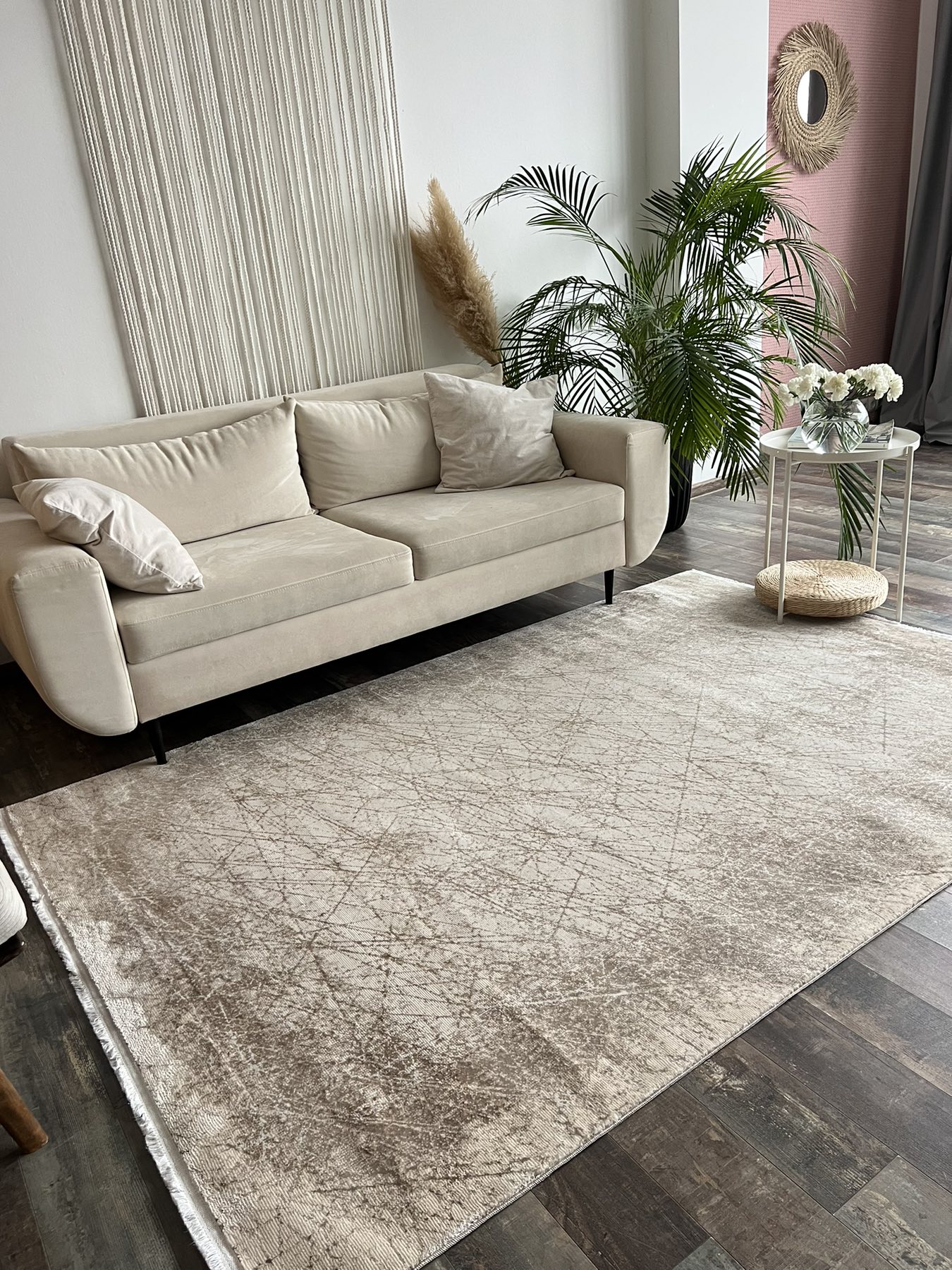 Тонкие ворсинки мелко сотканы на хлопковой основе с плотностью 1.2 млн узлов. Ворс 7-8мм